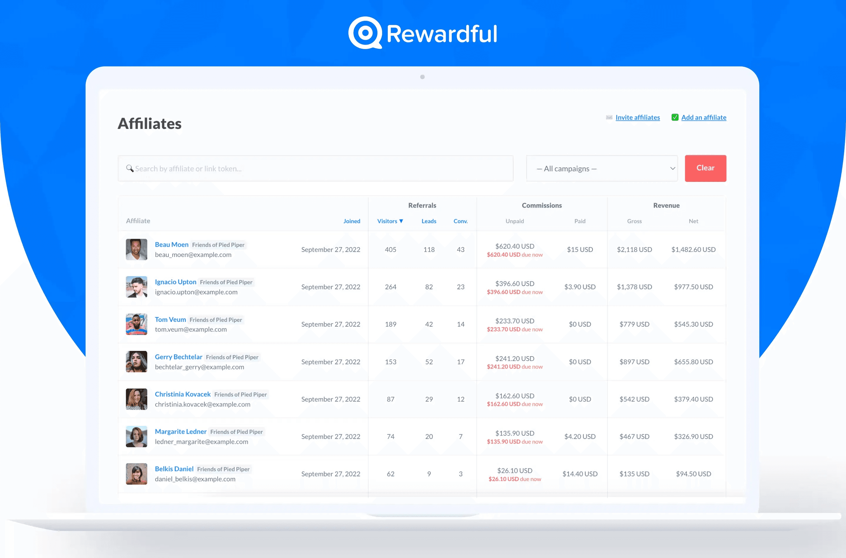 Rewardful helps you to manage your affiliate and customer referral programs seamlessly and get started with the affiliate marketing software built for SaaS professionals and marketers.